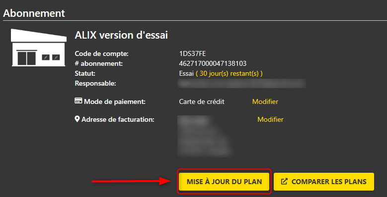 - Cliquez sur le bouton Mise à jour du plan.