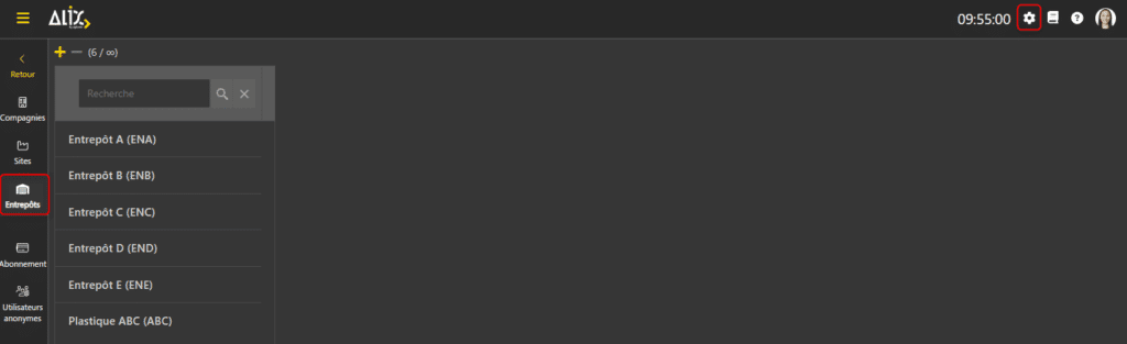 - Dans les Paramètres, allez dans la section Entrepôts.