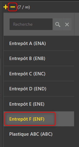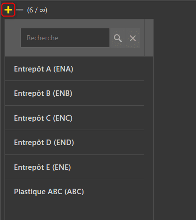 - Cliquez sur le bouton + en haut à gauche pour créer un nouvel entrepôt ou cliquez sur l’entrepôt voulu pour afficher ses informations.