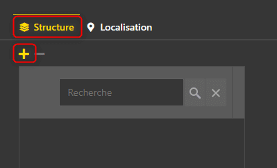 - Dans la section Structure, cliquez sur le bouton + en haut à gauche pour créer un nouvel élément de structure ou cliquez sur l’élément voulu.