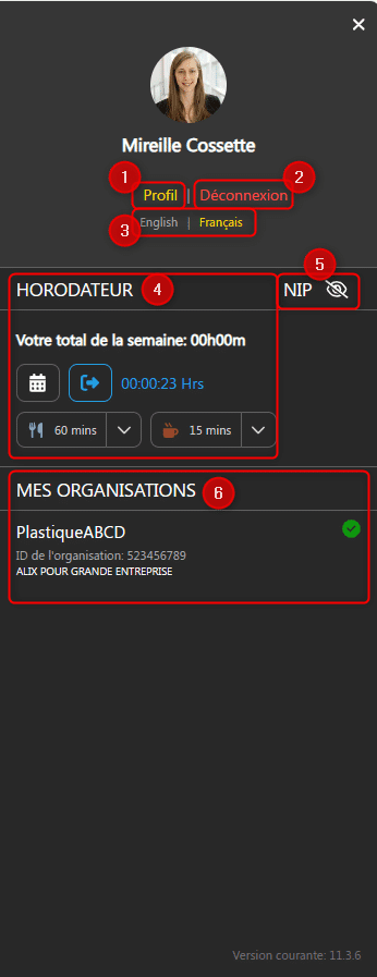 | 5. NIP | Passez la souris sur l’icône pour voir votre NIP. |