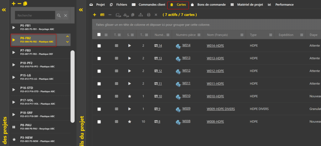 - Sélectionnez le projet voulu, puis cliquez sur l’onglet Cartes en haut de l’écran.