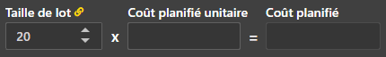 | Équipements | taux horaire Équipement vendant x heures planifiées Équipement étape |
