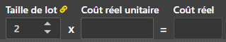 | Coût unitaire réel | Planification -> Projets -> Choisir un projet -> Matériel de projet -> Choisir un inventaire -> Informations