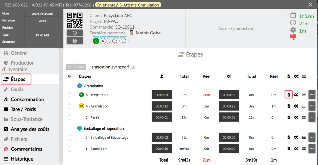 - À gauche, choisissez l’onglet Étapes, puis cliquez sur l’icône de fichiers de l’étape voulue.