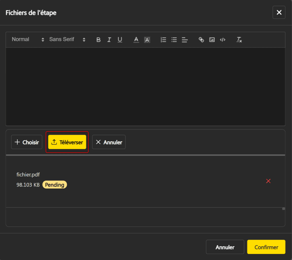 Il est possible d’ajouter des fichiers sur une étape de carte.